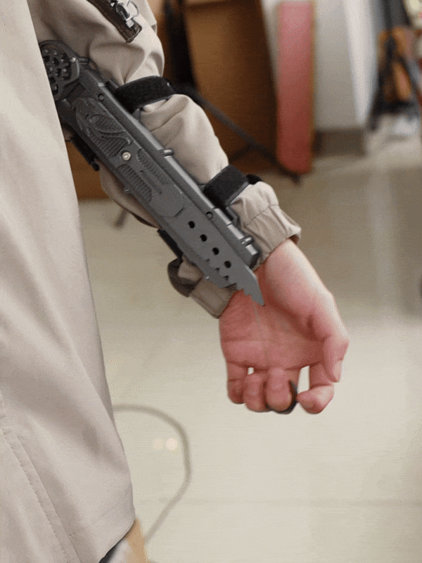 The product includes a 3D-printed Connor's Hidden Blade and two spare velcro strips.